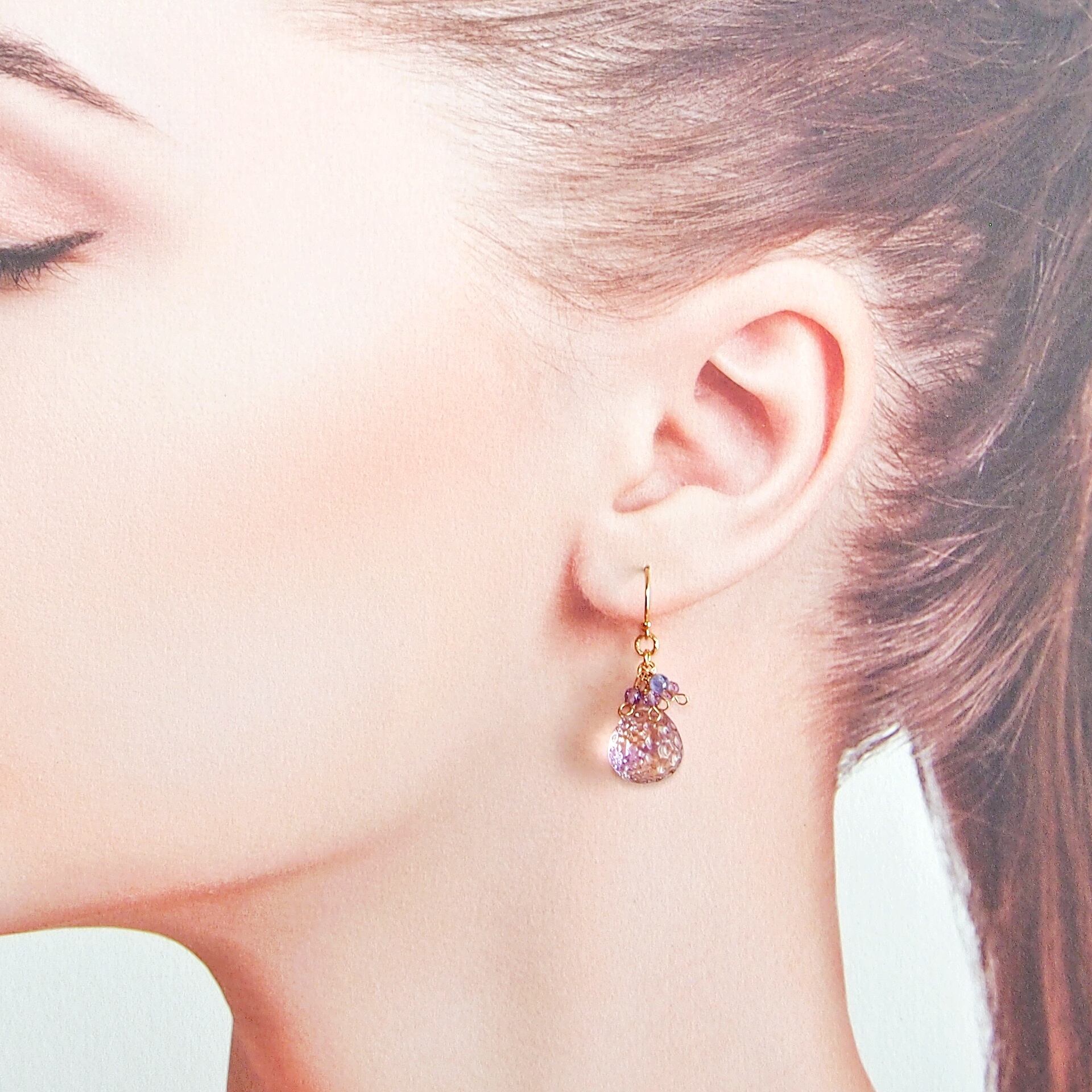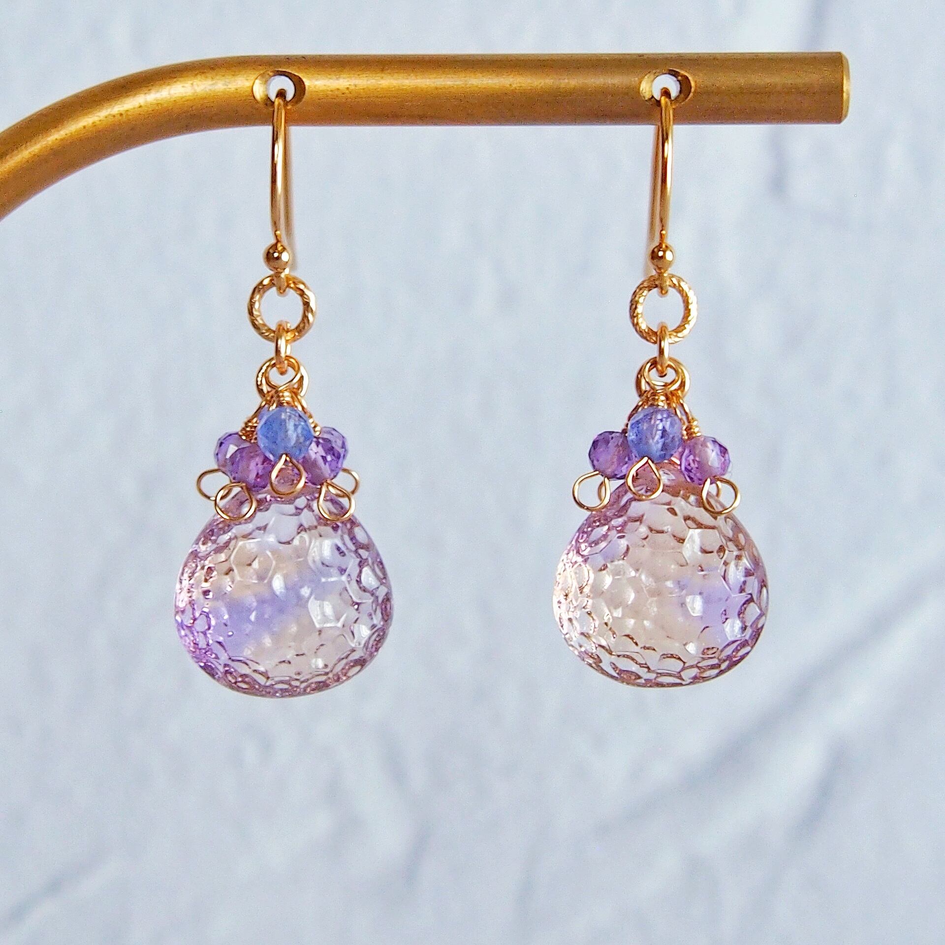 神秘的なグラデーションカラーが美しい、上質なアメトリンのマロンシェイプピアス。