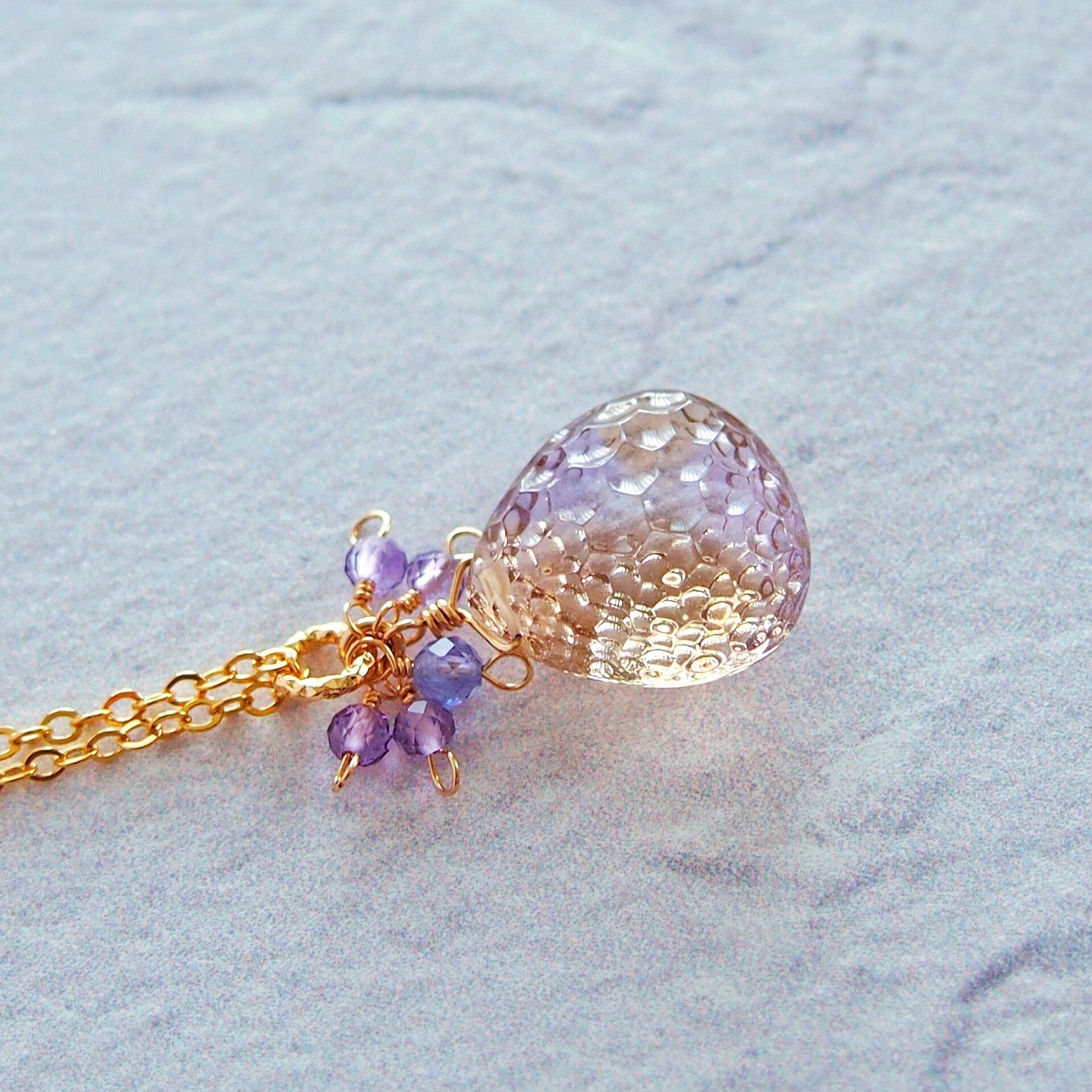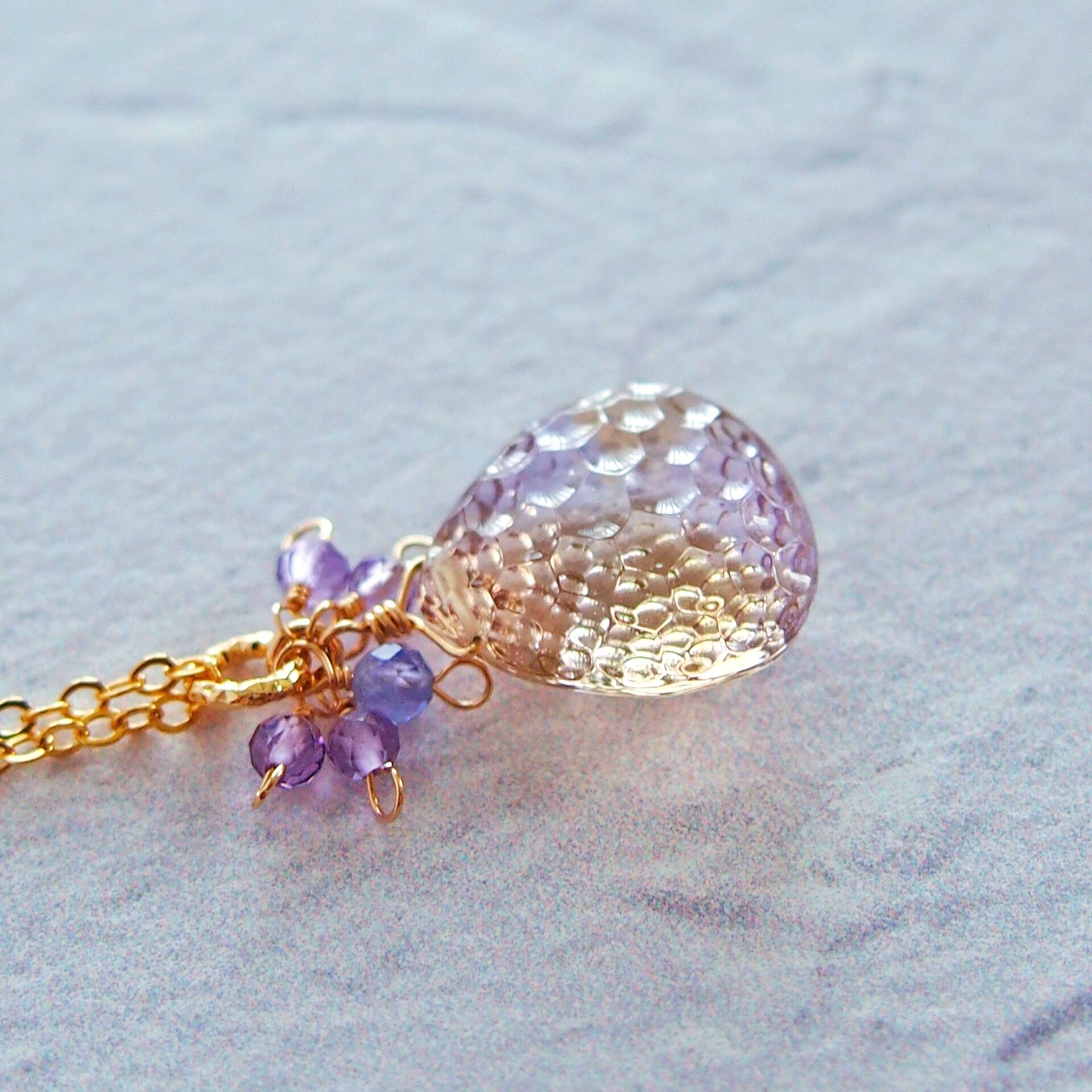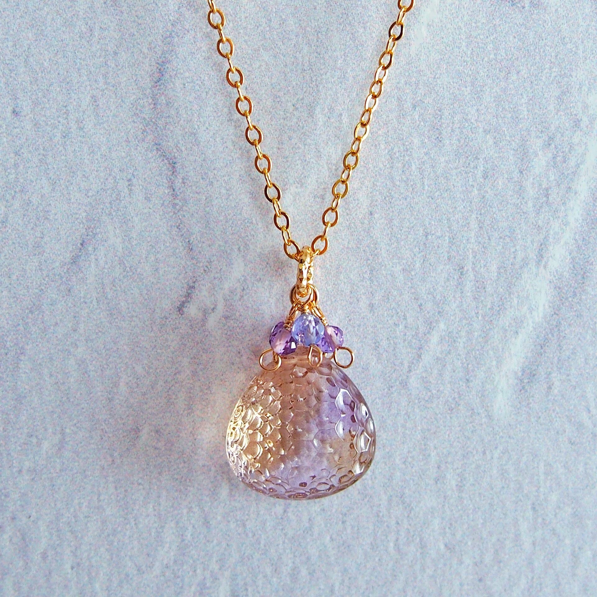 神秘的なグラデーションカラーが美しい、上質なアメトリンのマロンシェイプネックレス。