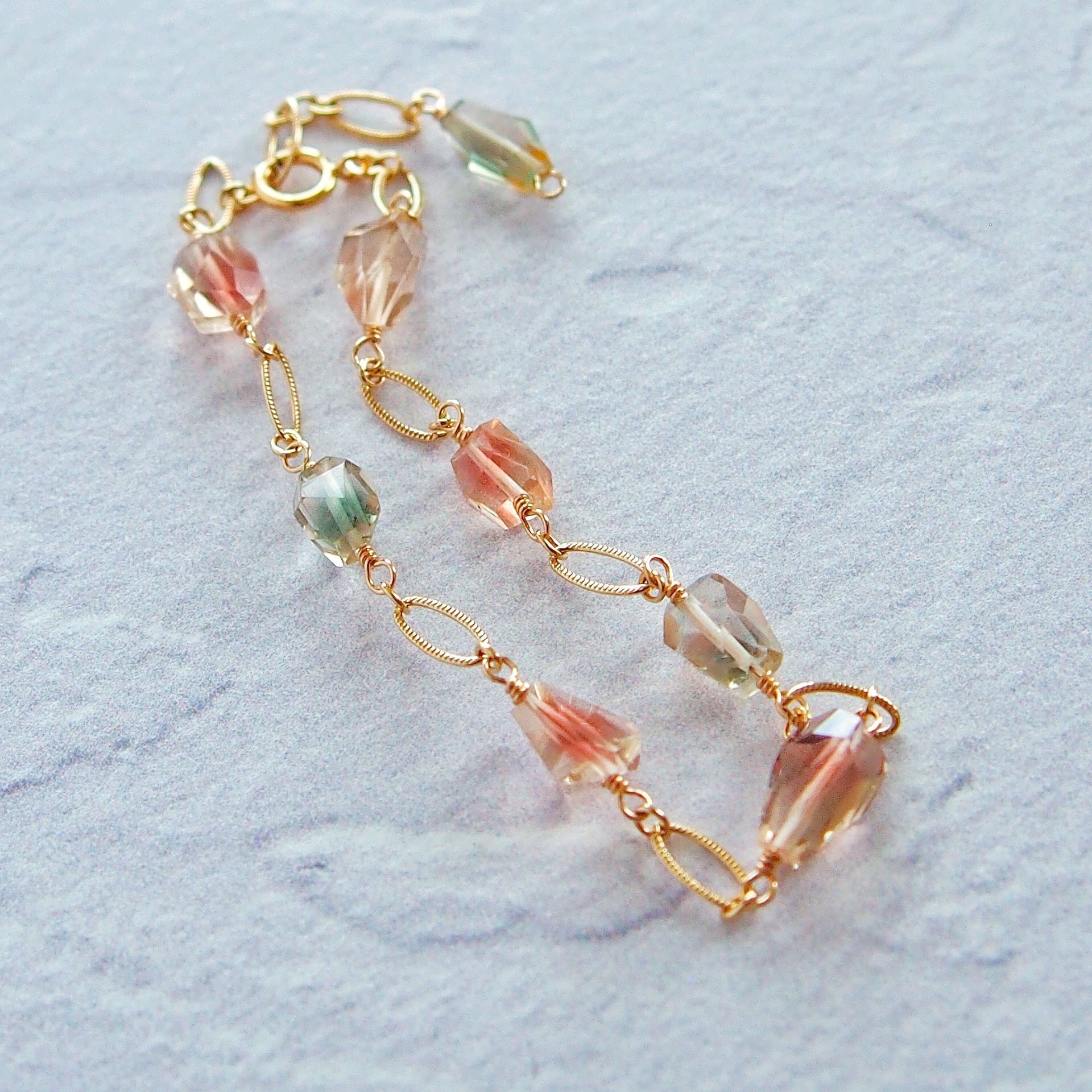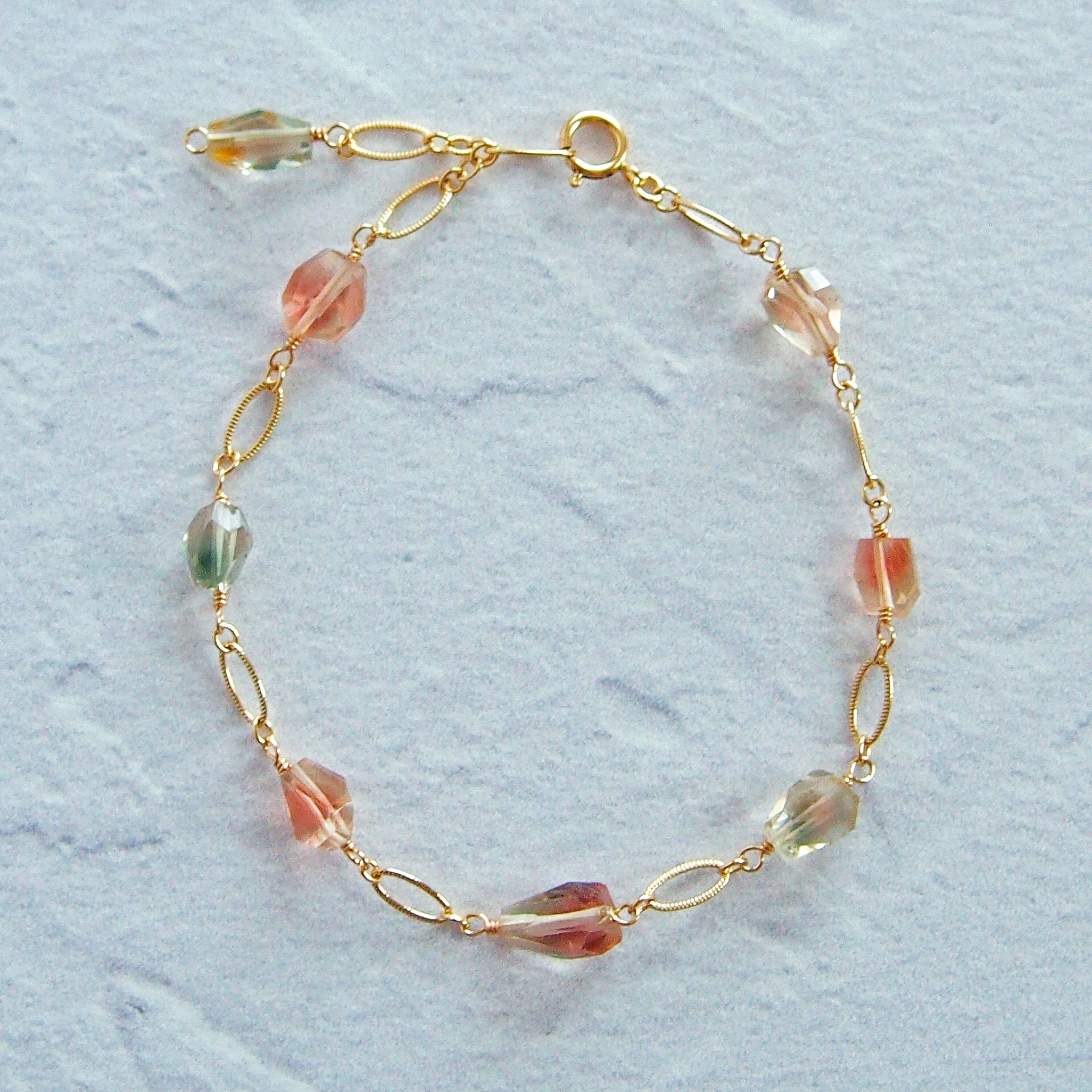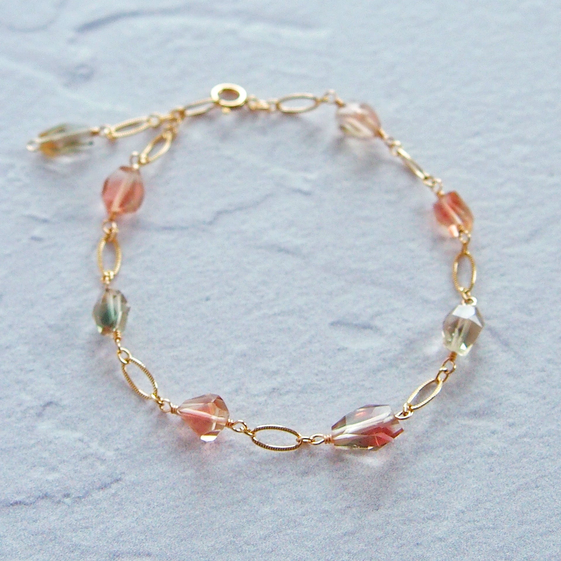 希少 宝石質 オレゴンサンストーン ブレスレット 14kgf B