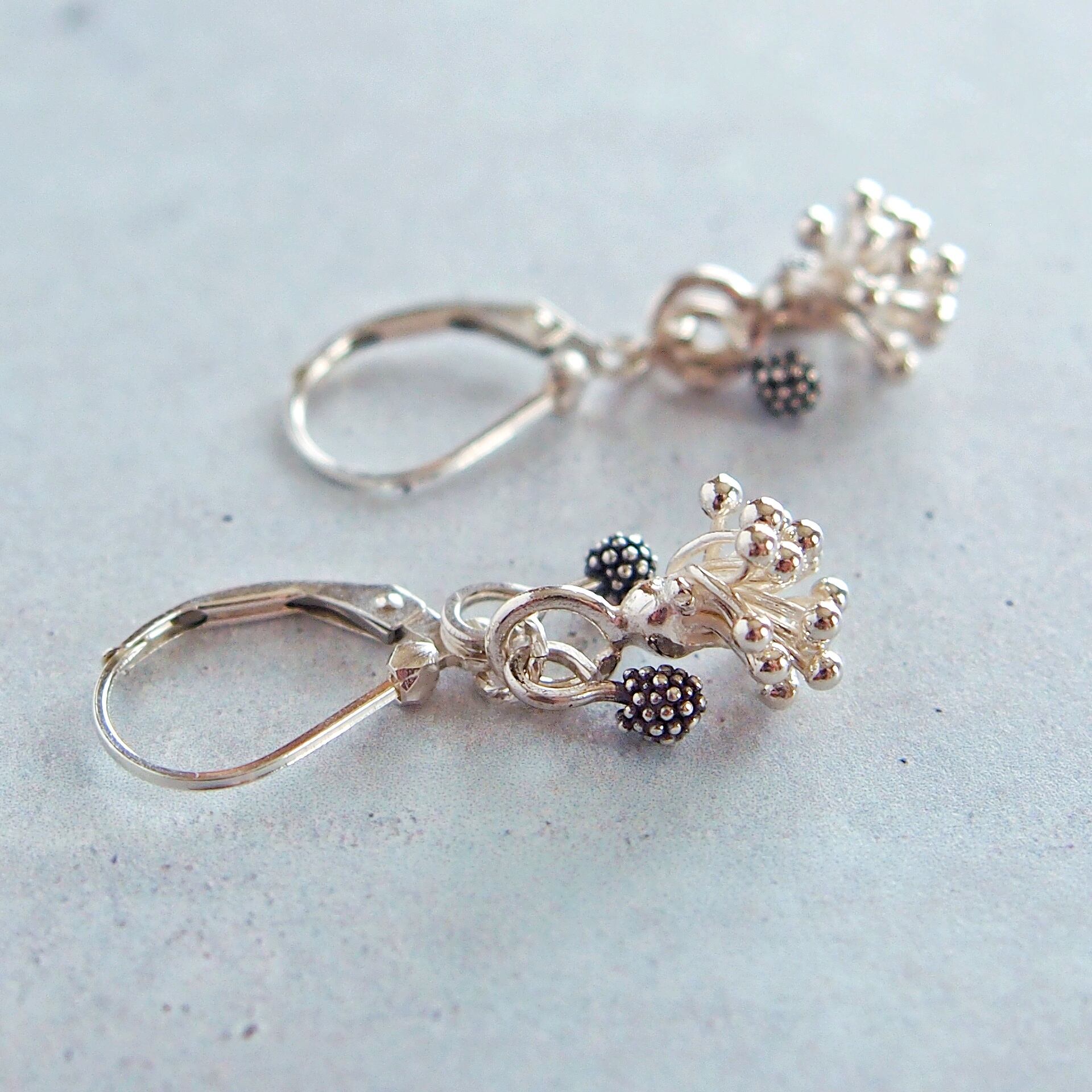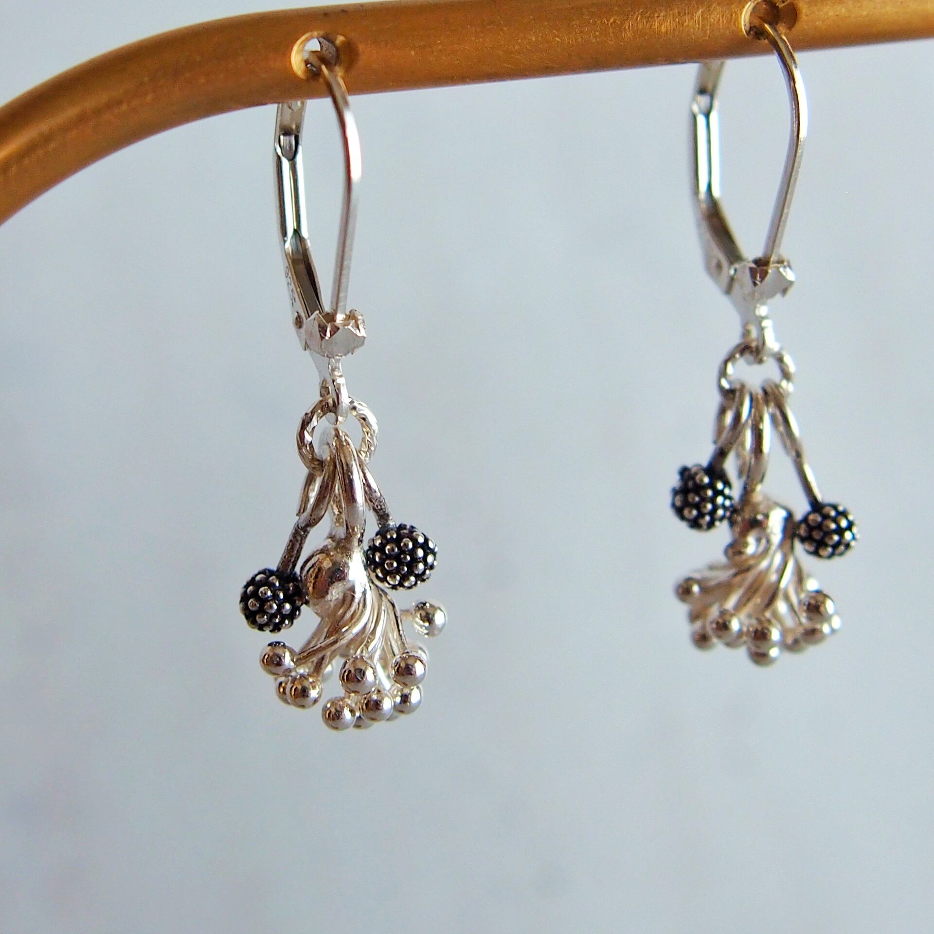 高純度のシルバーを使用して作られた蕾モチーフのサイドには、シルバー925に燻し加工が施されたラズベリーの様な粒々モチーフをあしらい、少し個性的なデザインに仕上げました。