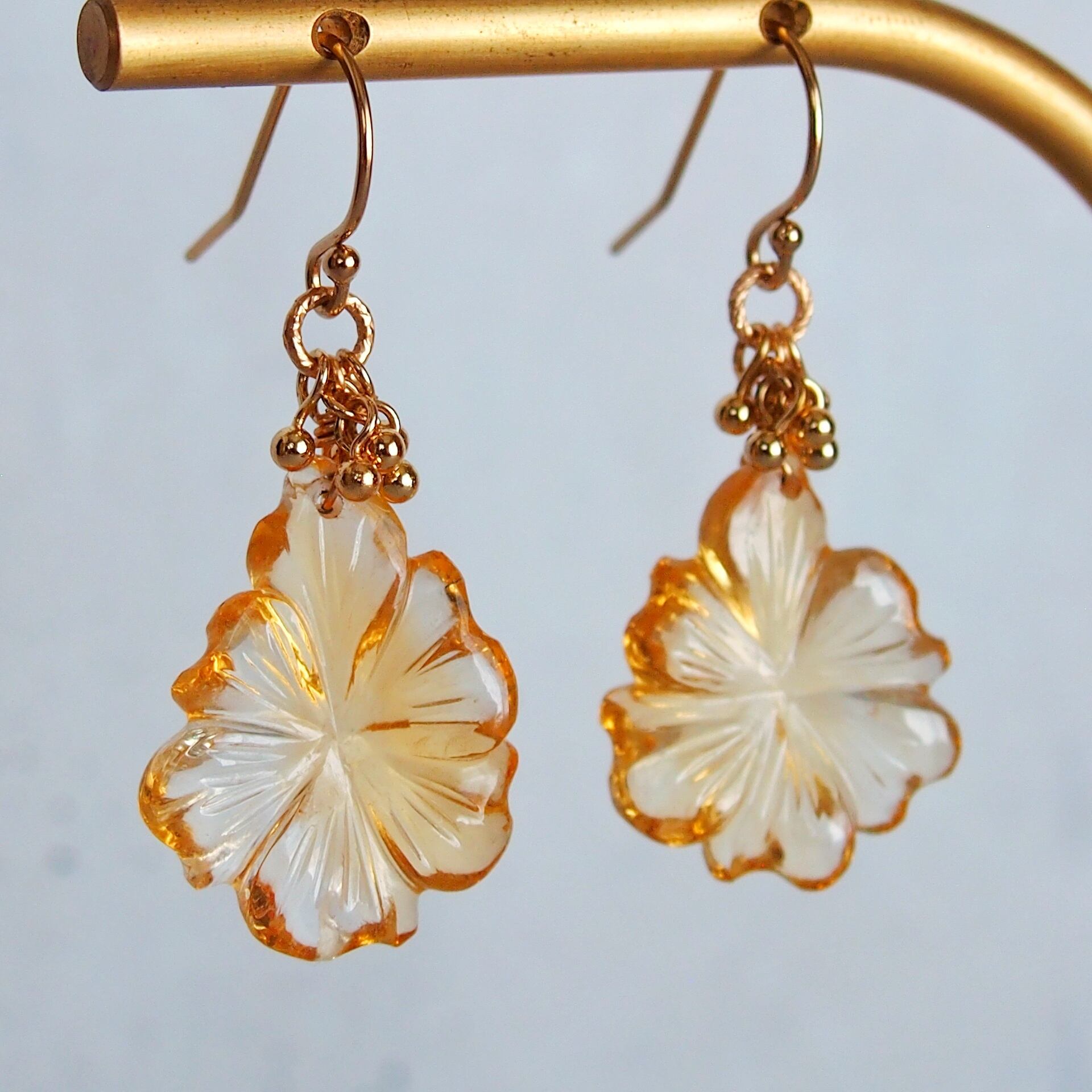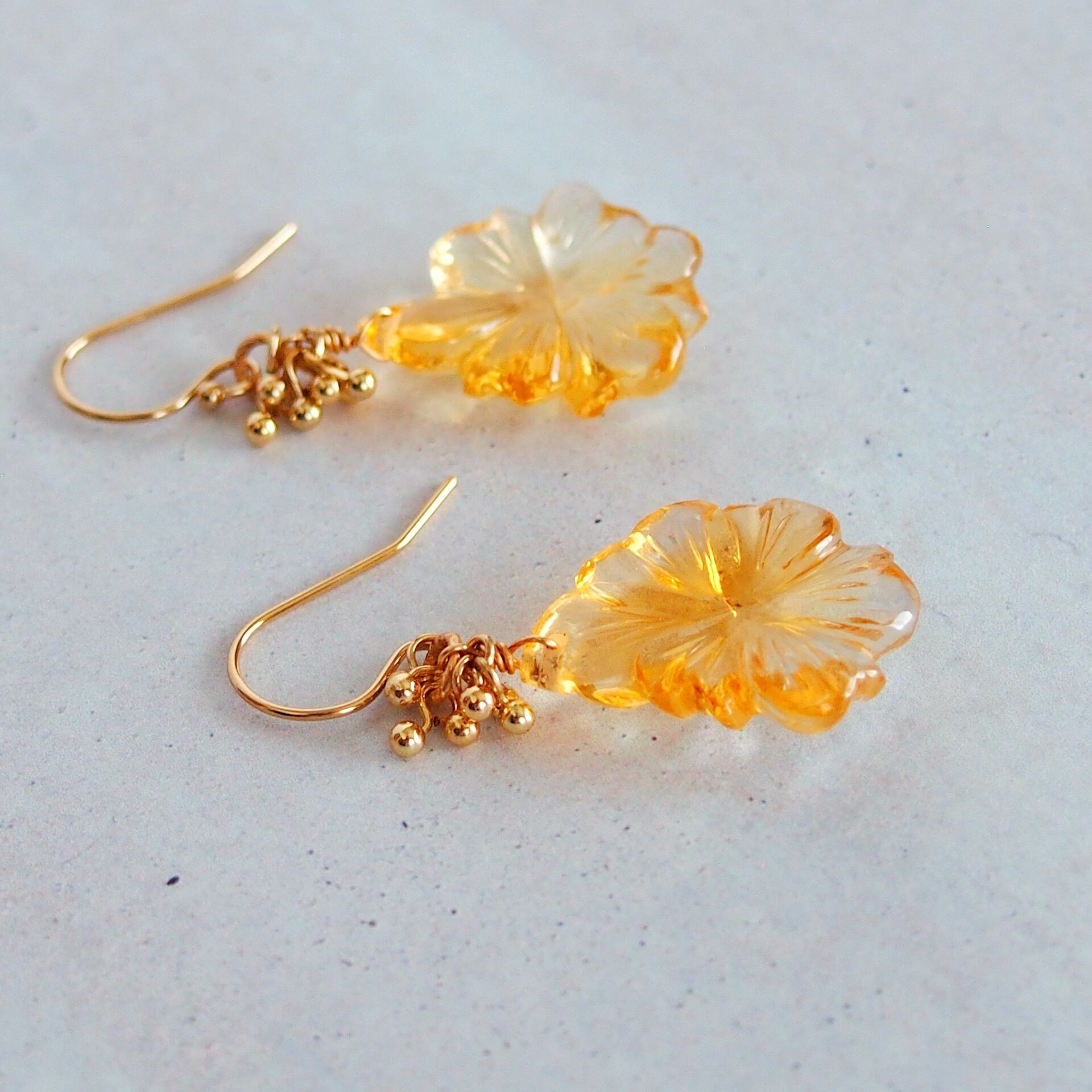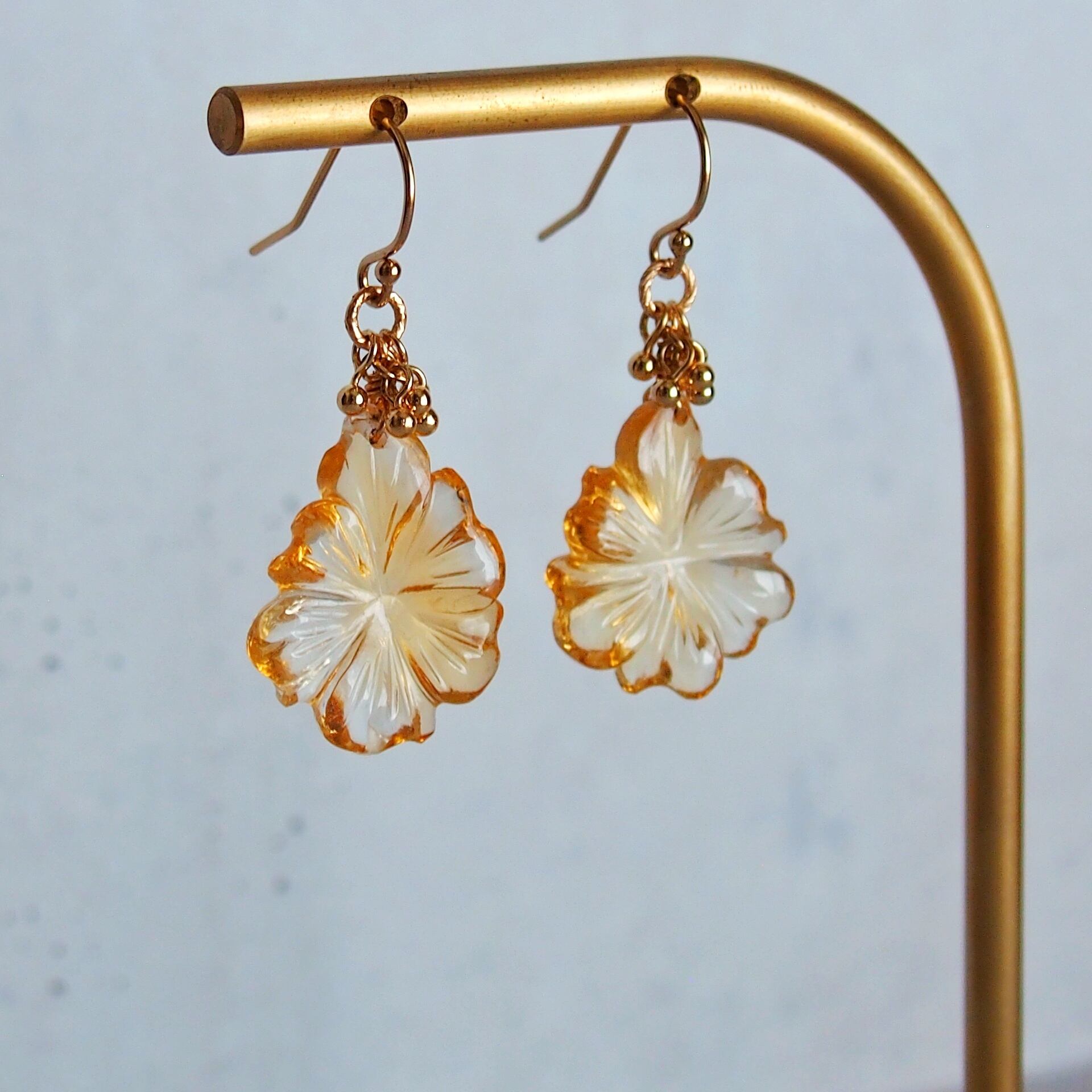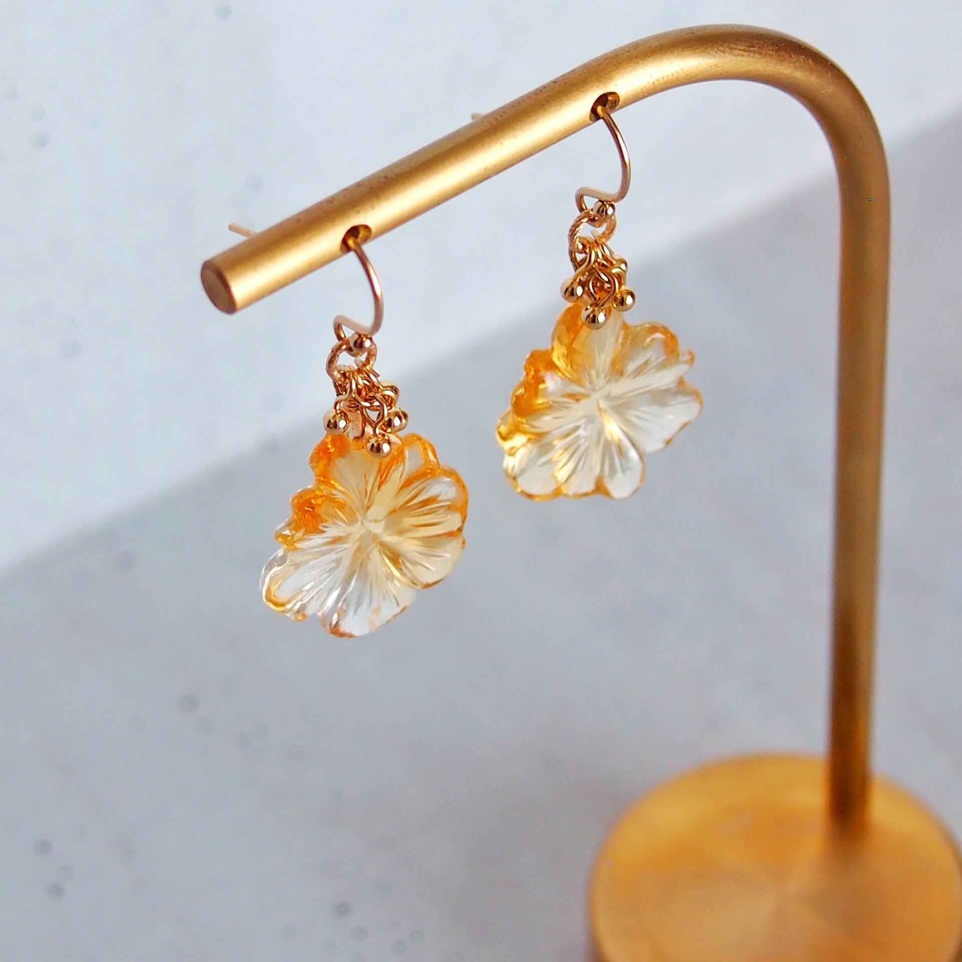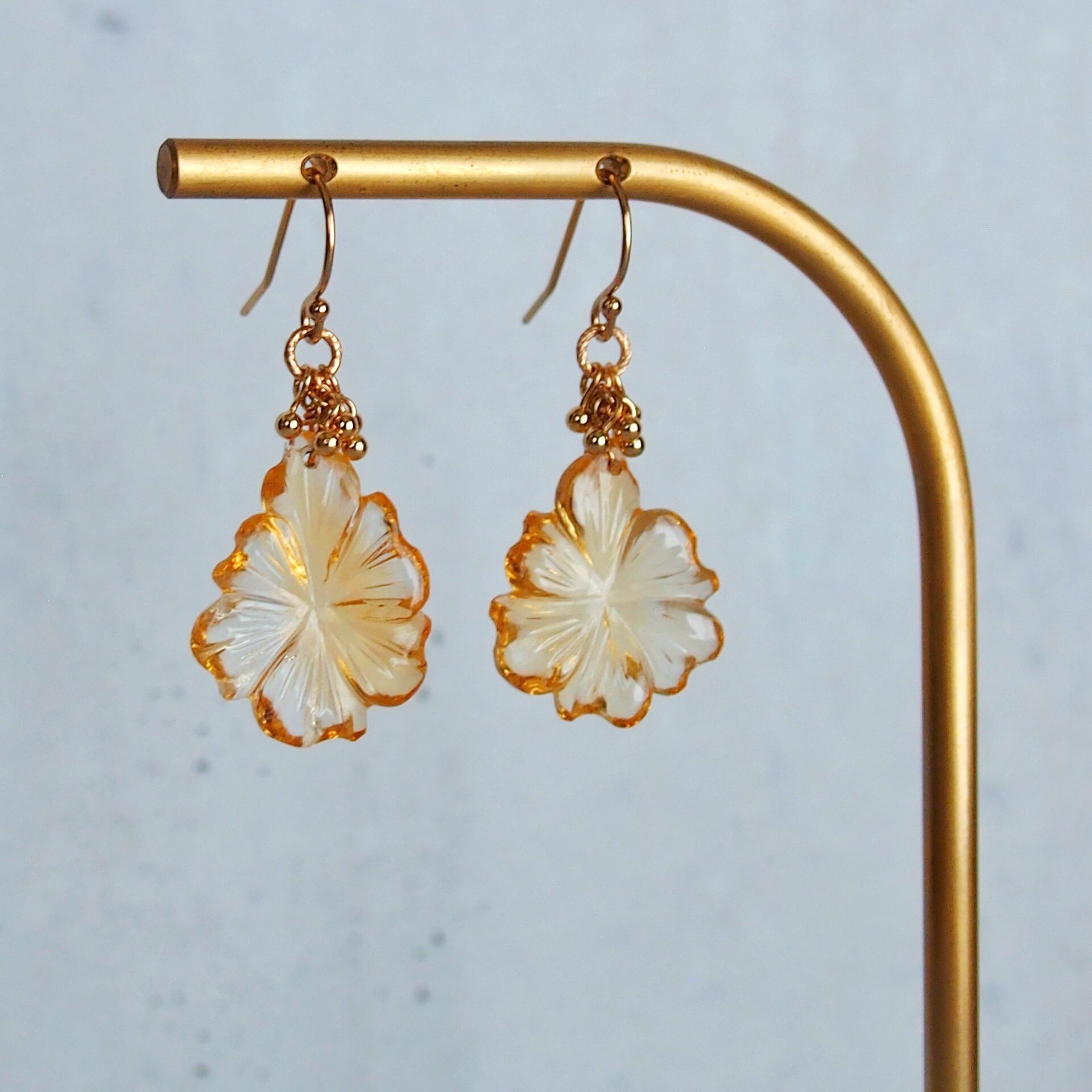 大変美しいフラワーデザインのシトリンが目を惹くピアス。