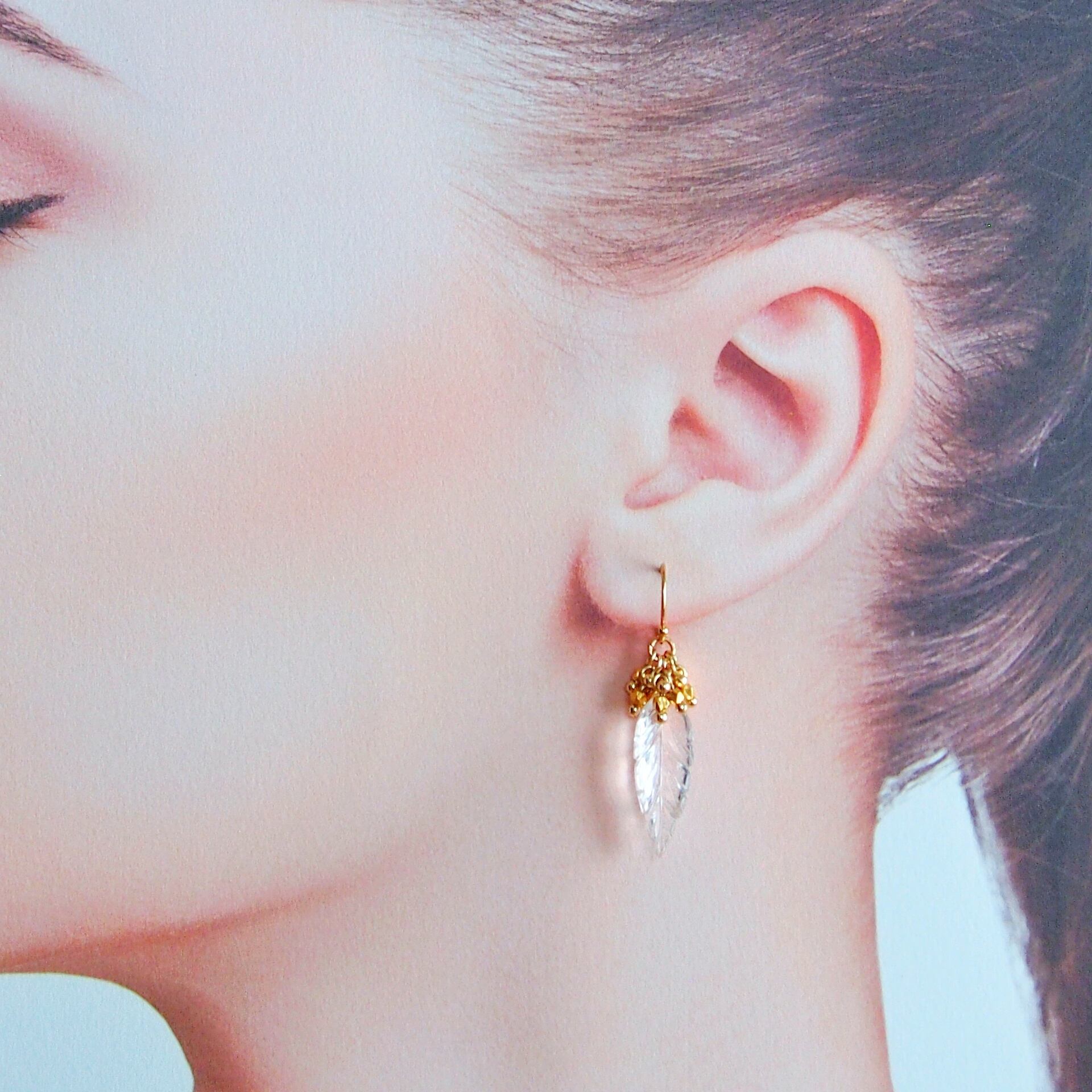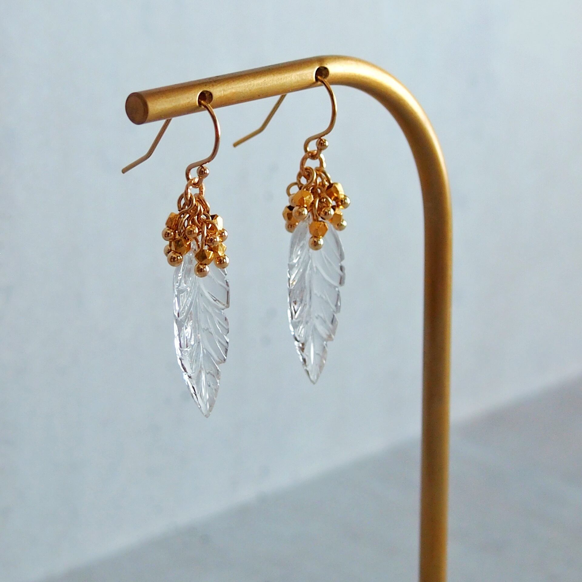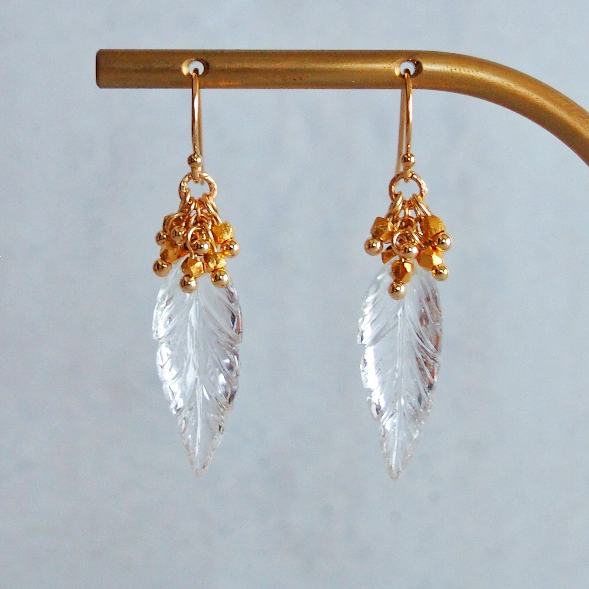 クリスタルクォーツ リーフピアス