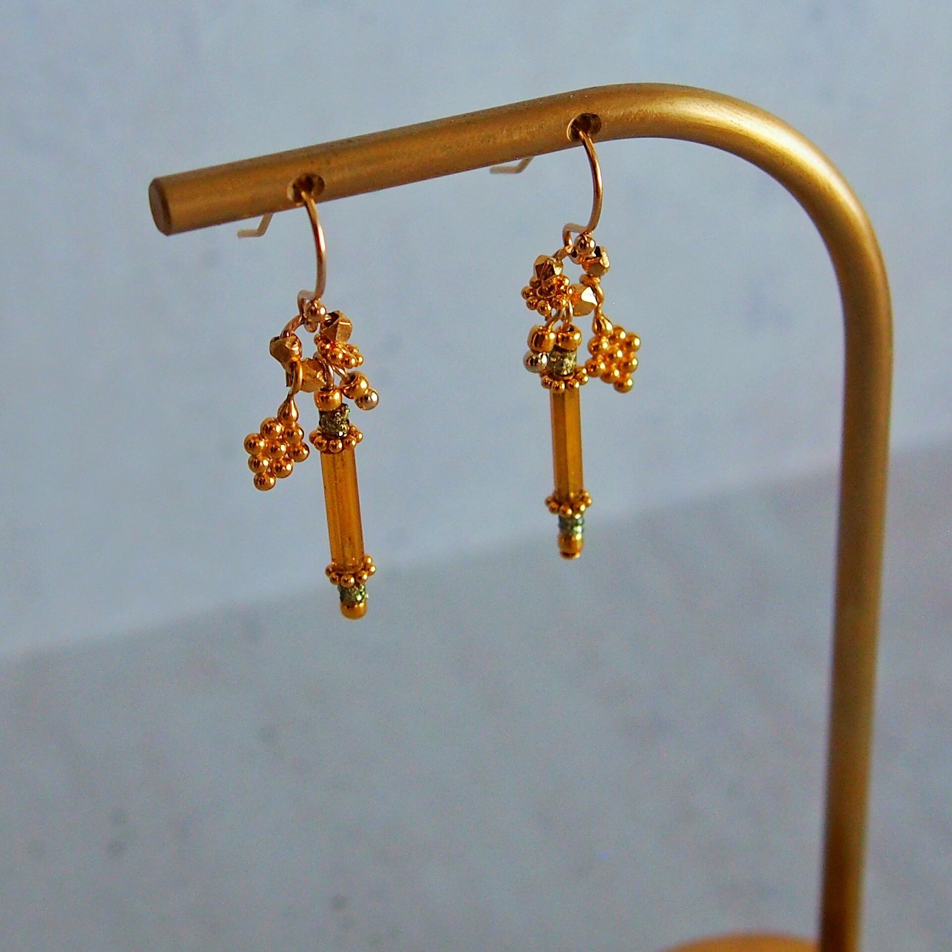 フランスのヴィンテージ&アンティークビーズを組み合わせたピアス。