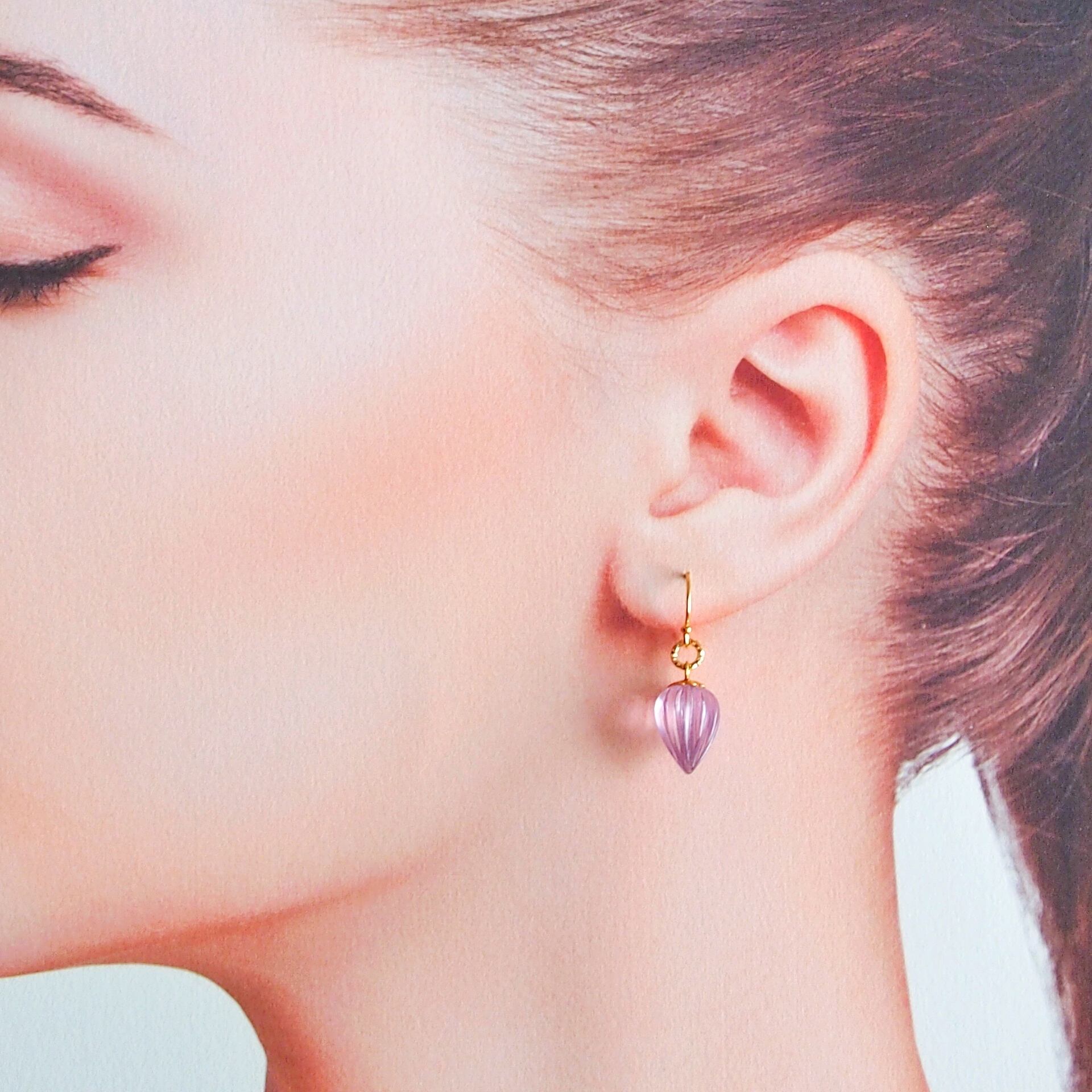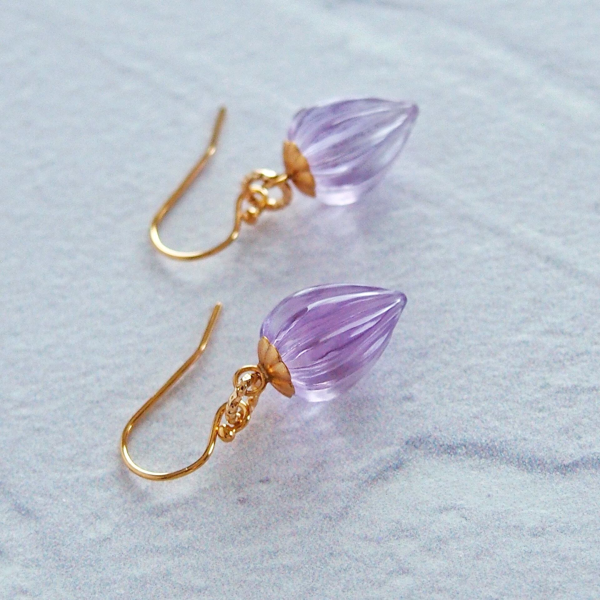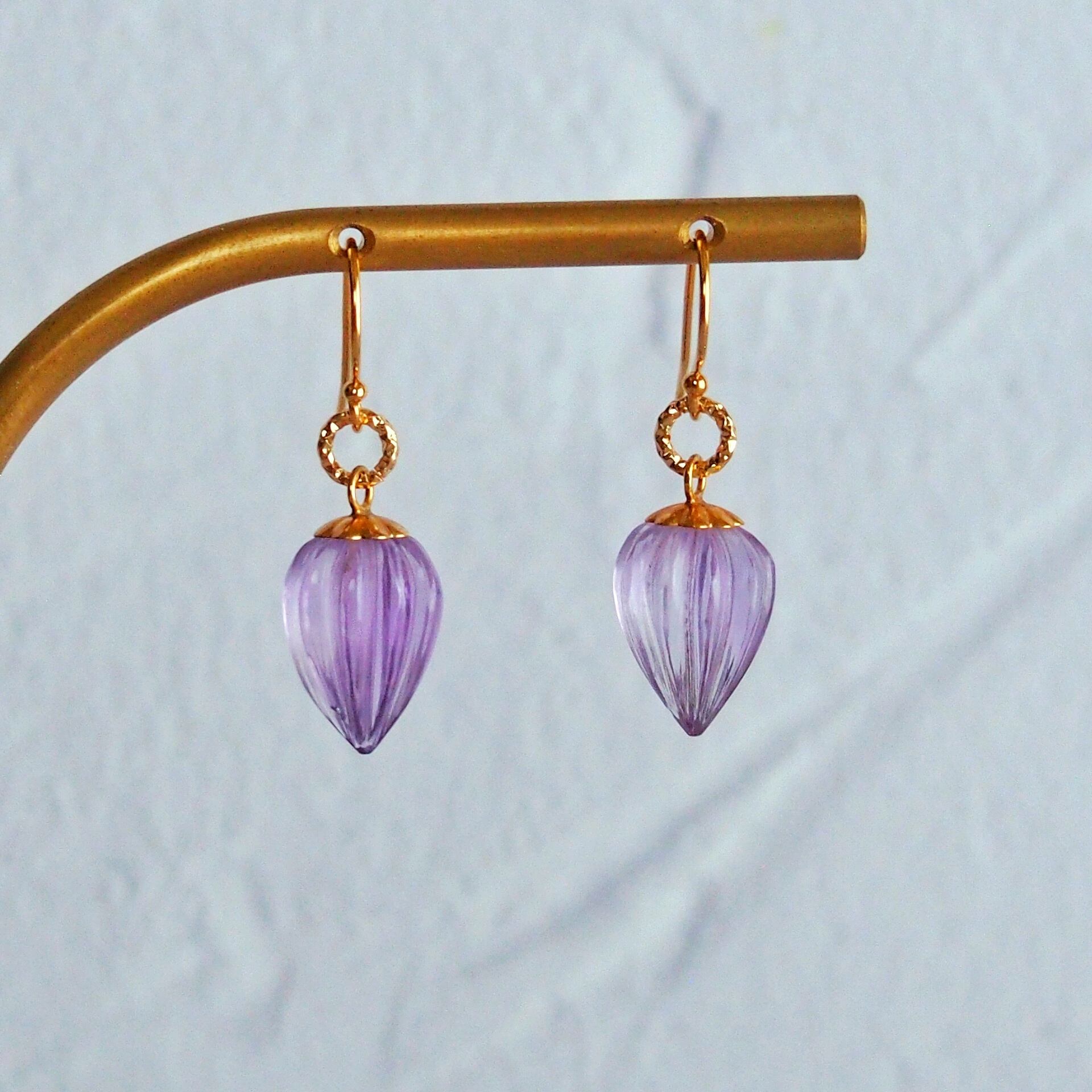 神秘的なお色味が印象的なアメジストのドロップカービングピアス。